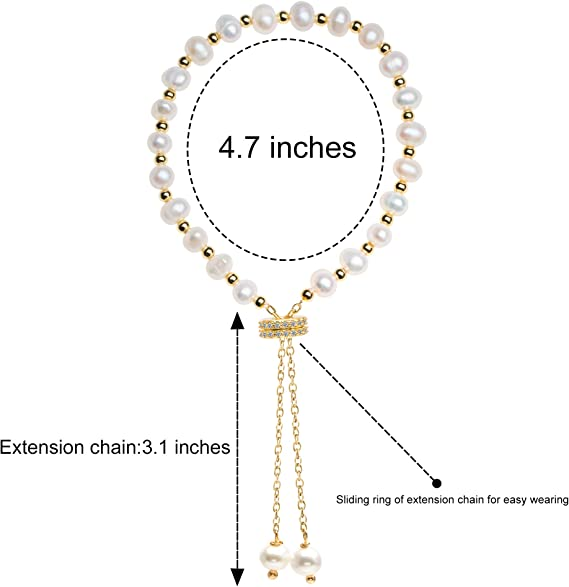Cowlyn Pearl Bracelet Chain Link Baroque Culture Bossimi 14K Gold Filled Adjustable Fashion Valentine Charm Dainty Handmade Jewelry for Women Wife Girls Mother(with Gift Box)