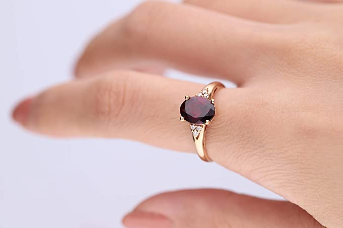 CRAFTSMANSHIP: This exquisite ring features a 7 mm wide x 9 mm long Raspberry color Natural Rodholite Garnetl oval-cut and gemstone. Beautifully crafted from 10k Rose gold Raspberry color Natural Rodholite Garnetl along with diamonds creating a classic and sparkling design.