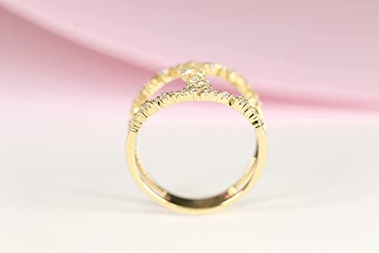• CRAFTSMANSHIP: This exquisite ring features a 57 Pcs Genuine White Diamond Round-cut gemstone. Beautifully crafted from 14K Yellow gold Genuine White Diamond creating a classic and sparkling design.