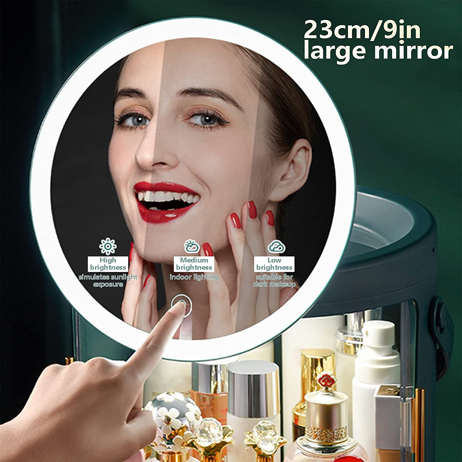 • 【Elaborate Design】Hidden Double Door Design, Multi-function Rotating Cosmetic Case, 60° Adjustable Mirror Surface, 150° Adjustable Lever.