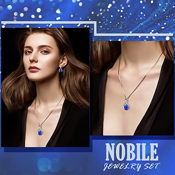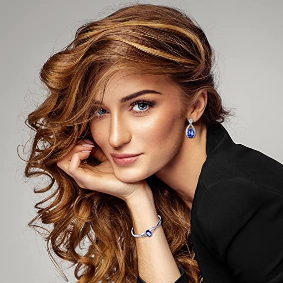 ♥SAPPHIRE MATERIALS♥ The sapphire necklace, the bangle bracelet and the stud earrings are made with crystals from Menton Ezil which is a brand authorized by Swarovsk. Environmentally friendly material Zinc Alloy, Lead-Free & Nickle-Free, passed Swiss SGS Inspection Standard, no harm to health