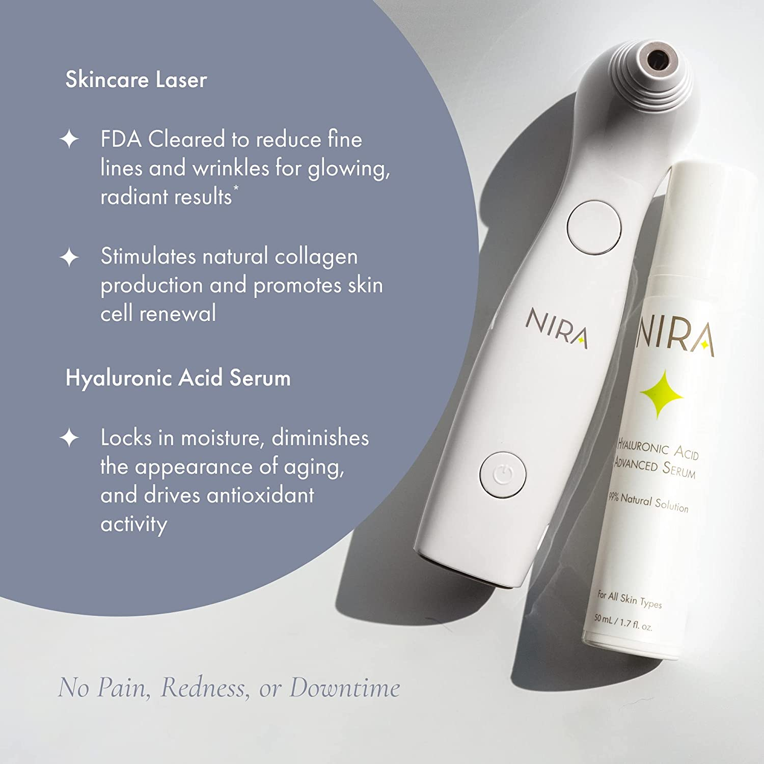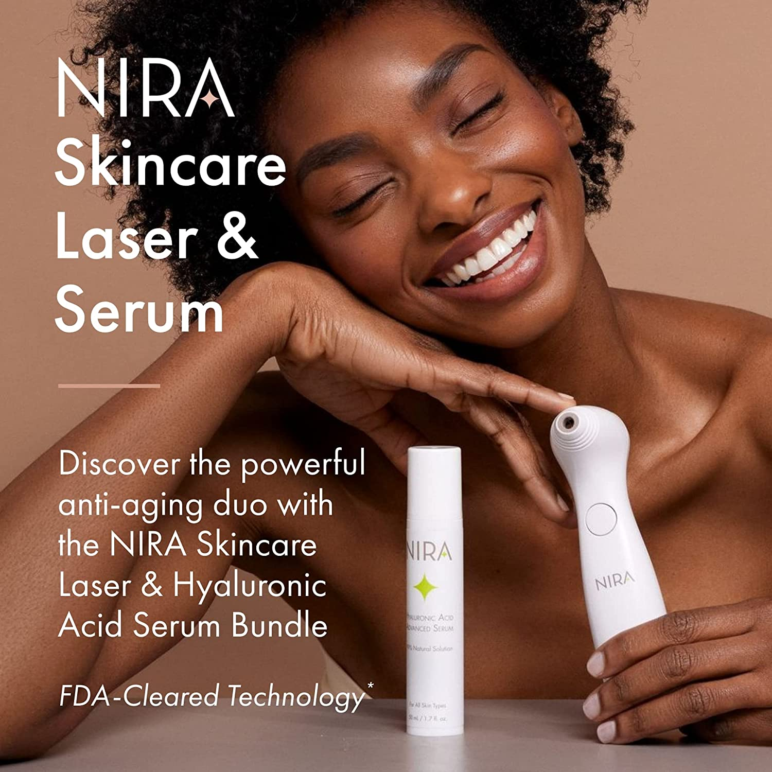 NIRA's Hyaluronic Acid Serum hydrates skin instantly while the NIRA Anti-Aging Skincare Laser provides dramatic long-lasting results over time. When combined, they offer the fastest acting solution to fine lines and wrinkles. Safe for all skin types. Easy-to-use in just 2 minutes a day. Made in the USA.